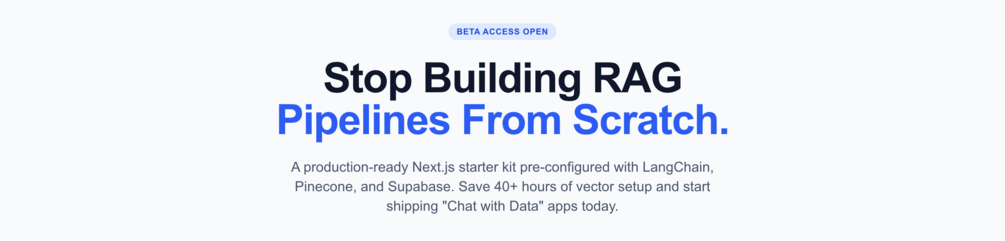 A production-ready Next.js starter kit pre-configured with LangChain, Pinecone, and Supabase. Save 40+ hours of vector setup and start shipping "Chat with Data" apps today.
